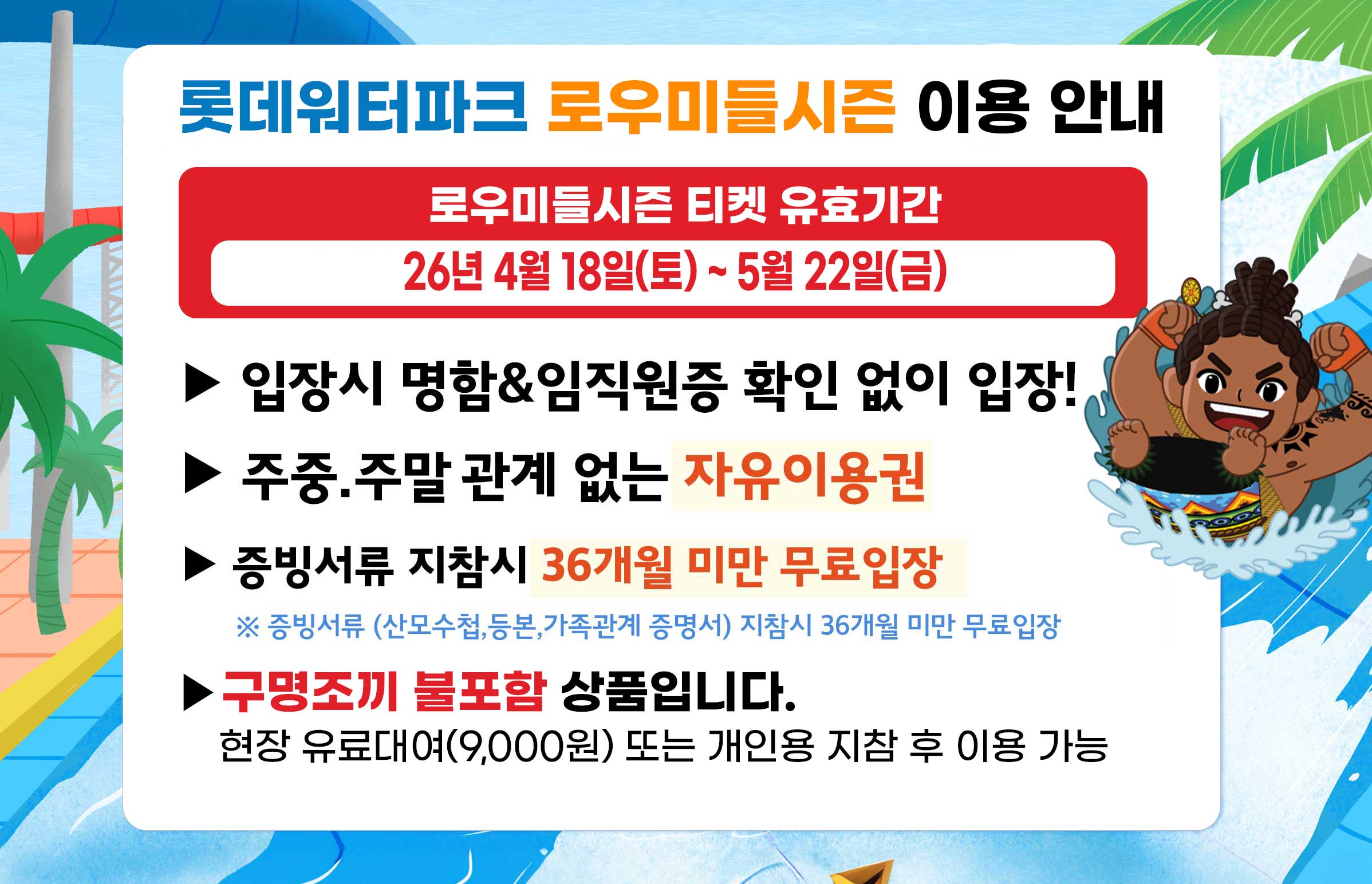 로우미들시즌 입장권(04.18~05.22) / 구명조끼 불포함